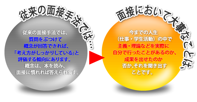 | 従来の面接 | 行動事実分析 面接法 |